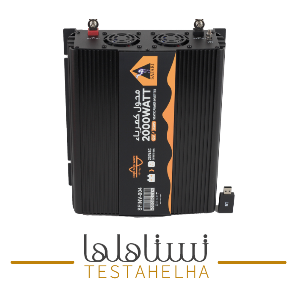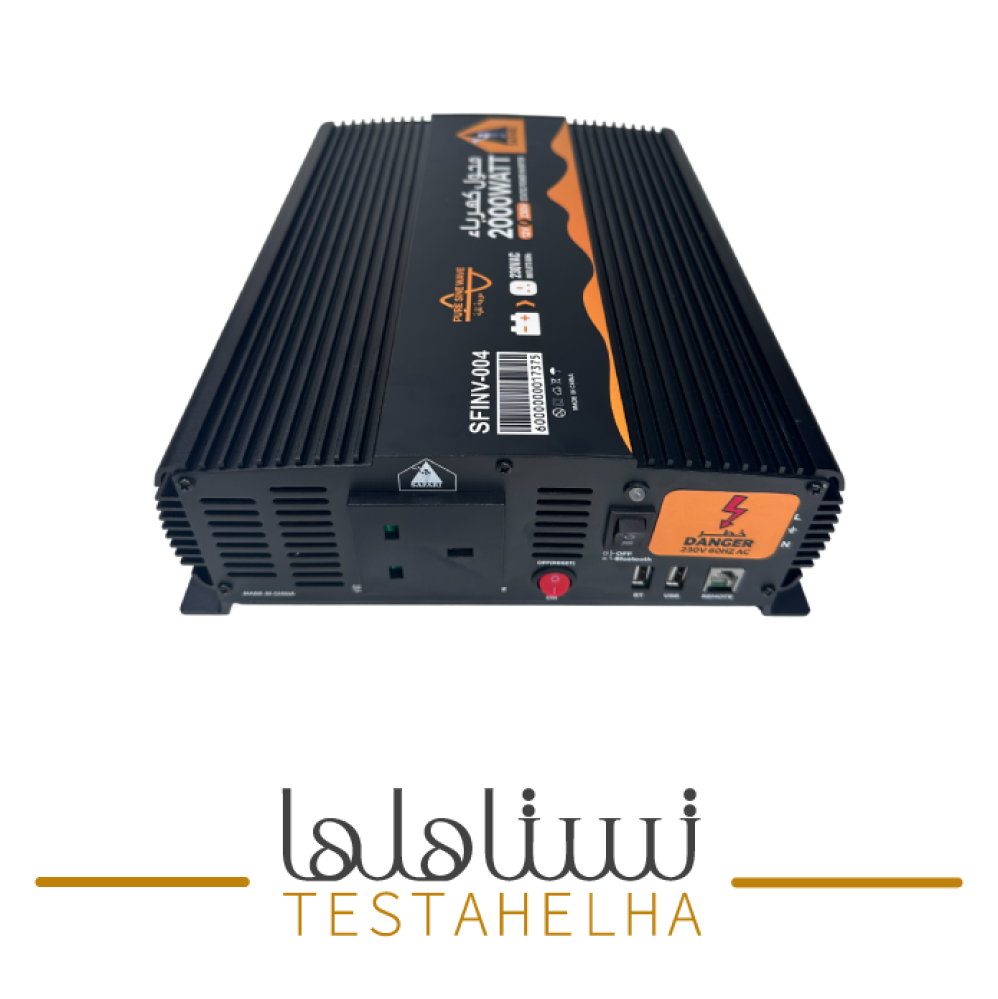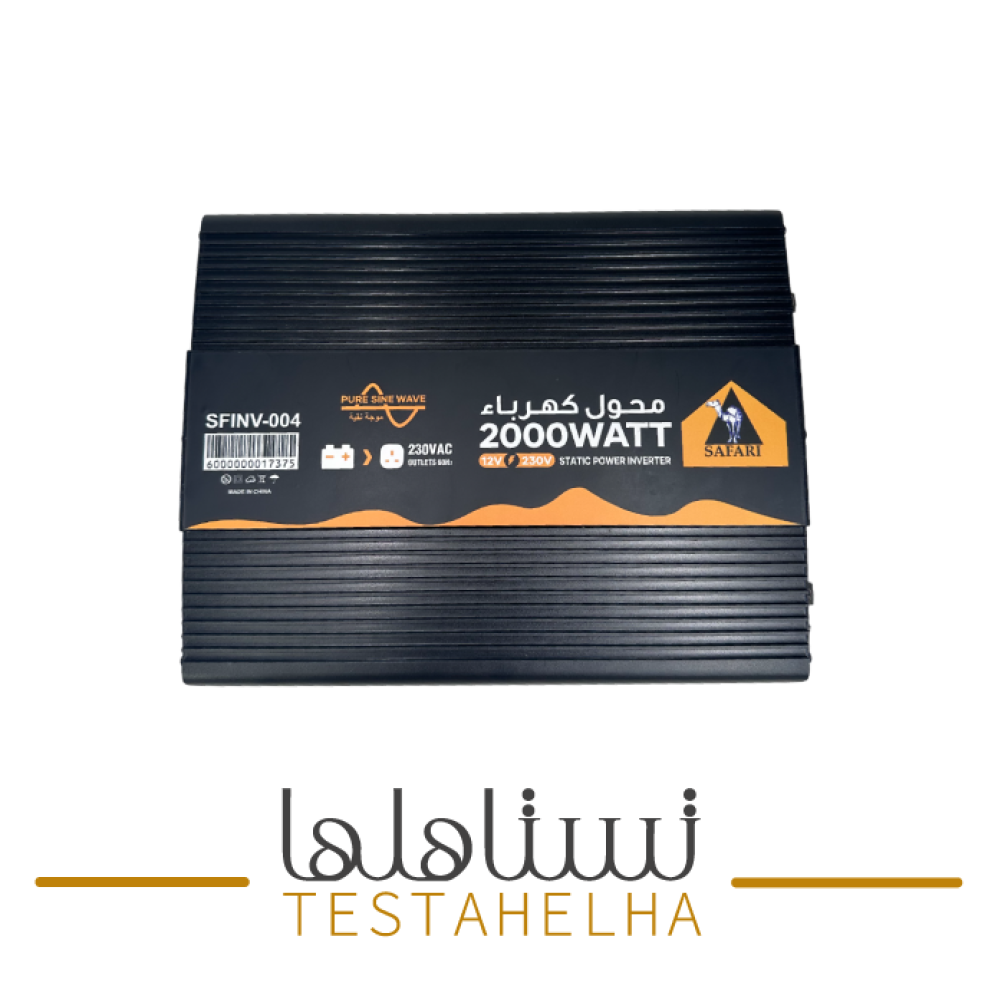 محول الكهرباء 2000 واط من سفاري يستخدم لتحويل التيار المستمر (DC) من بطارية 12V إلى تيار متردد (AC) بقوة 230V، مما يسمح بتشغيل الأجهزة الكهربائية التي تعمل بالكهرباء المنزلية عند عدم توفر مصدر كهربائي مباشر.